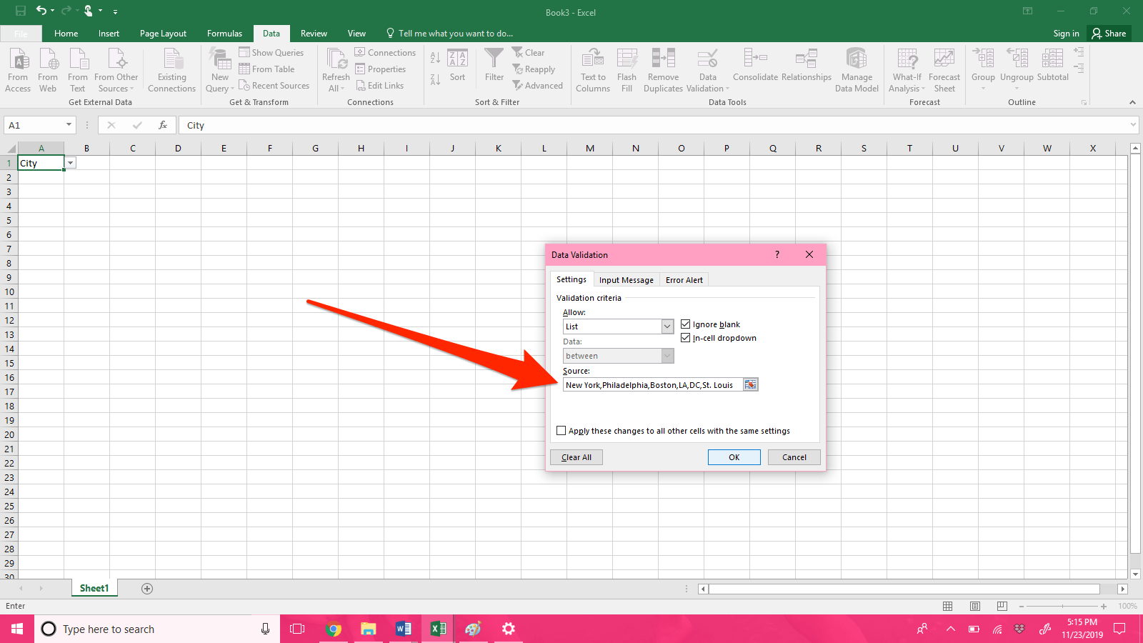 Cara membuat drop down list di excel selanjutnya anda pilih tab menu data > data validation atau kamu juga bisa menggunakan shortcut dengan . · klik data validation yang tertera pada tab menu data . Di bagian drop down allow pilih list, . In the settings tab of the . · kedua, klik tab data, kemudian klik icon data validations .